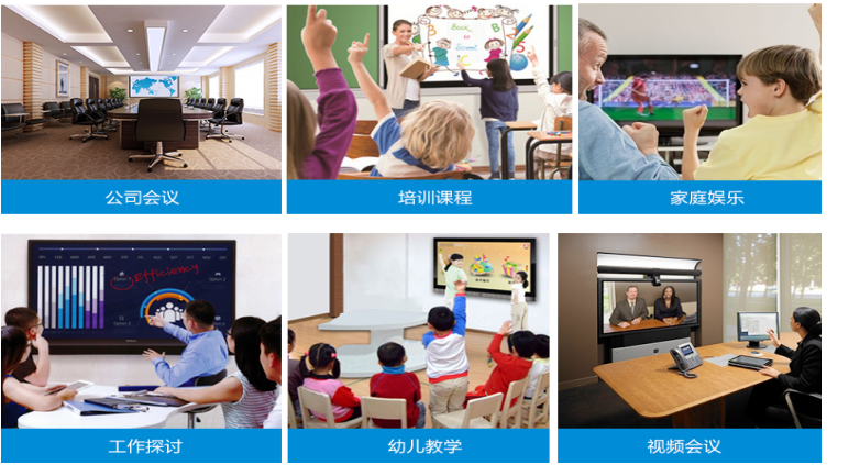 4大高頻應用,會議白板、文件管理、貴賓接待、多屏互動,采用圓形按鈕設計,雙排布局,高效調用;
