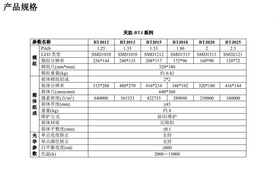 規(guī)格參數(shù)表